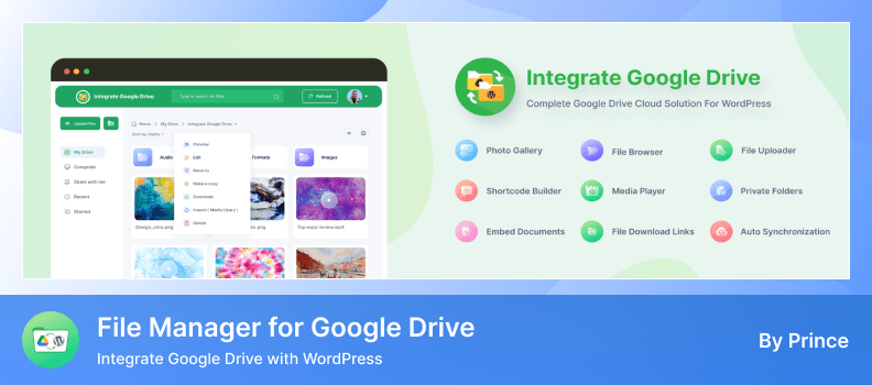 Advanced File Manager is a versatile plugin that adds powerful file management features to your WordPress media library. With its Google Drive integration, you can connect your Drive account and manage files directly from the media library with ease.