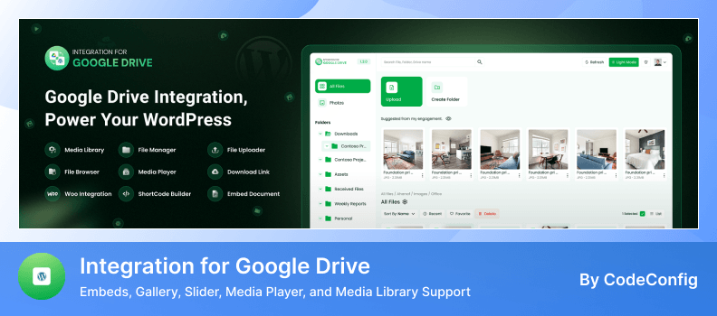 - Seamless Google Drive Integration: Connect your Drive account to WordPress to manage files directly in your media library.