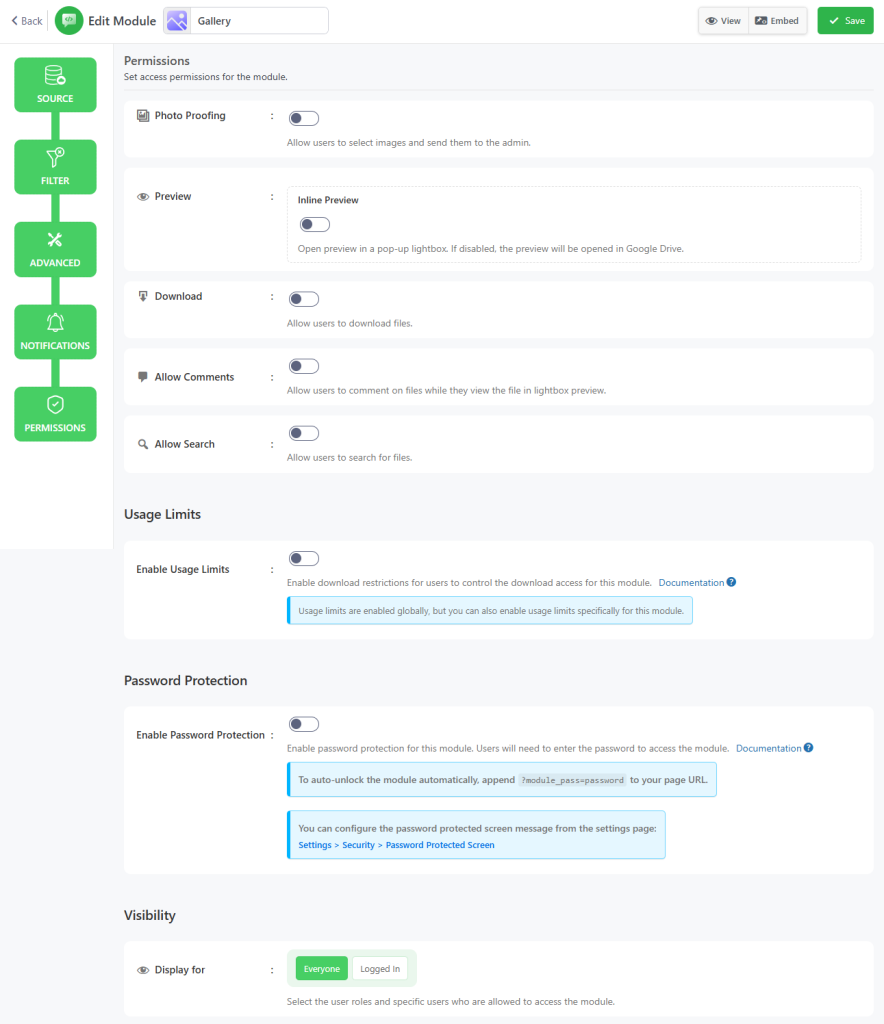 - Usage Limits: Enable download restrictions for users to control the download access for this module.