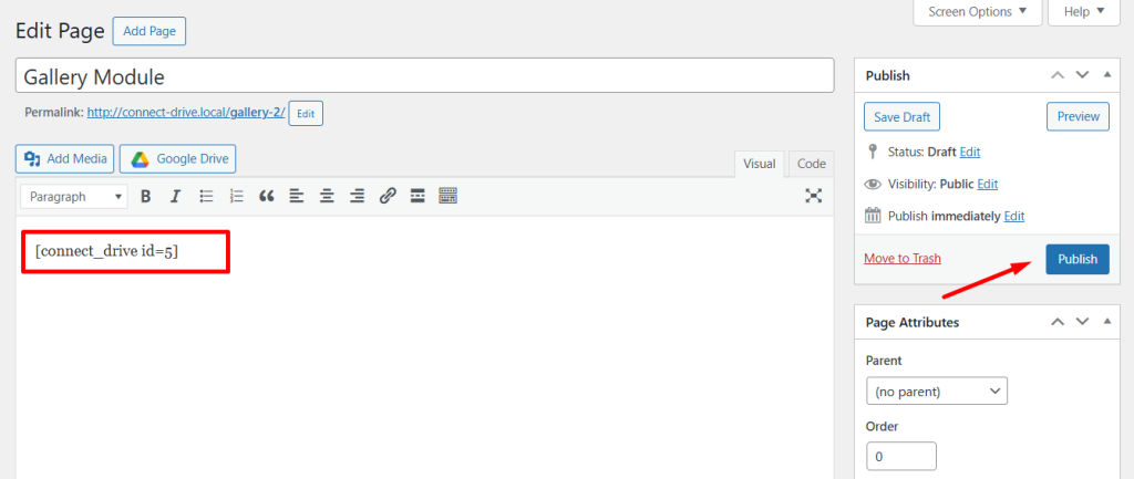 - Paste the Gallery Shortcode.
