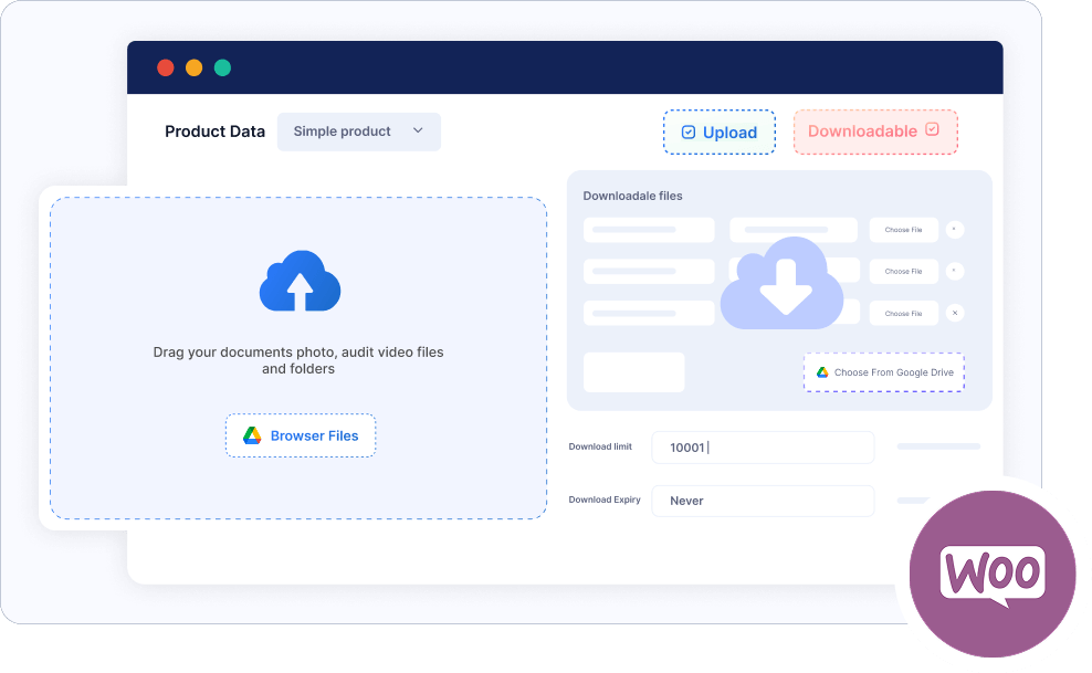 Use connect Drive files as WooCommerce downloads Secure file delivery after order completion Supports large files and multiple file types No need to upload files to WordPress Works with both simple and variable products